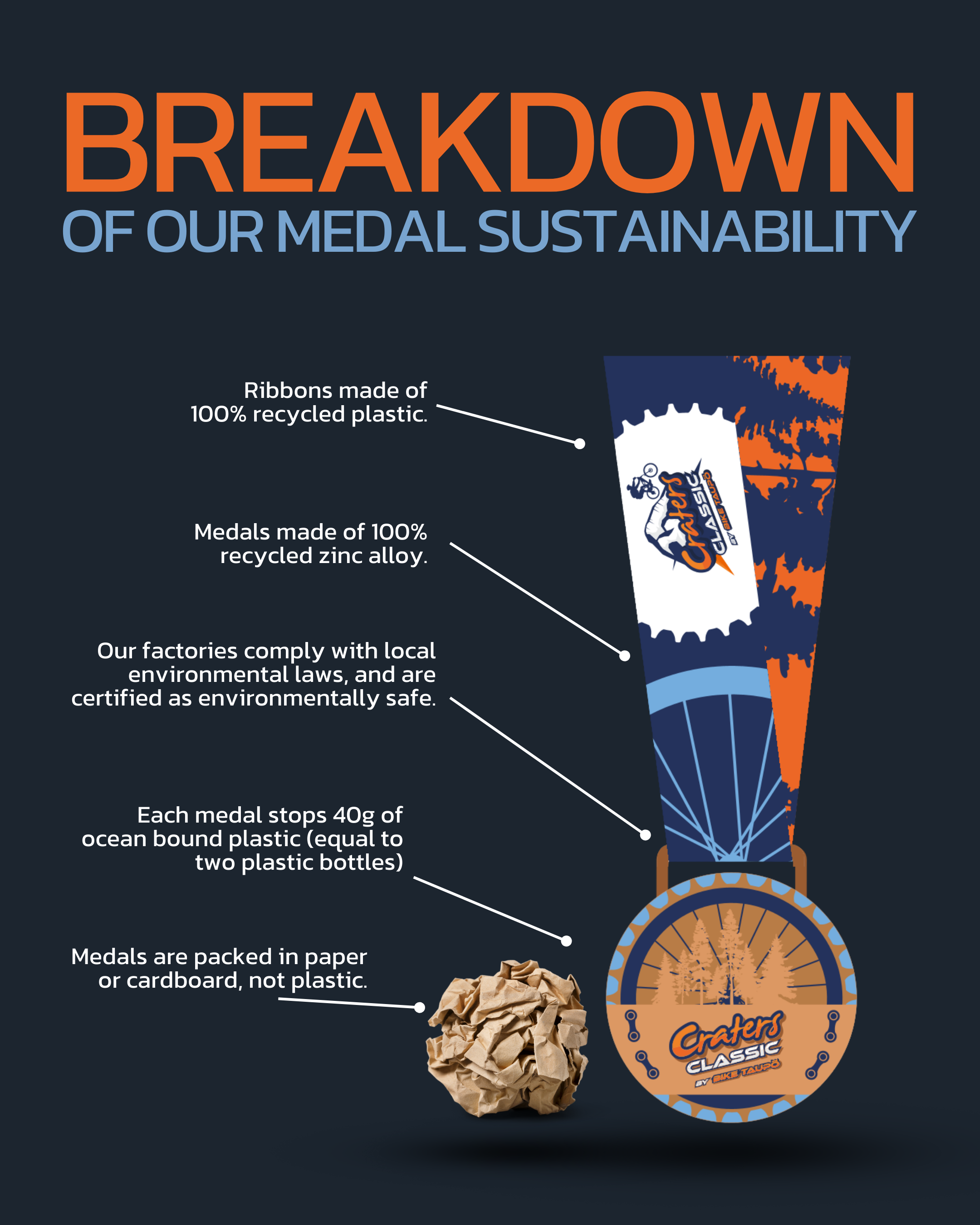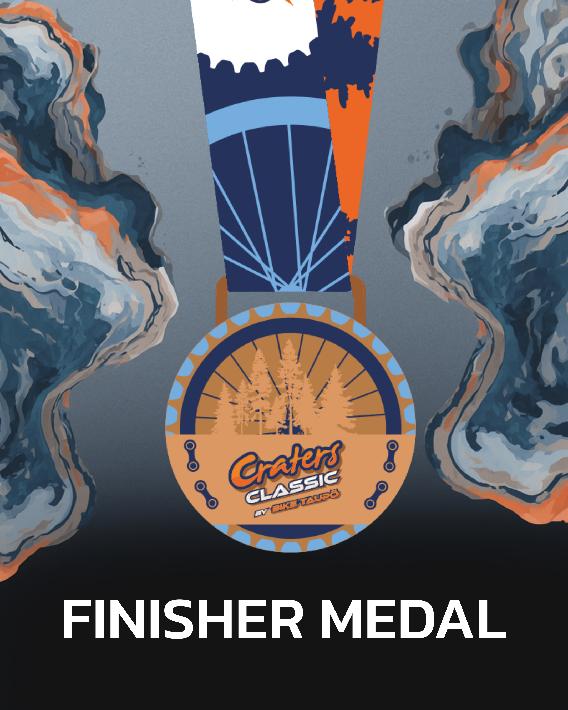 The Craters Classic medals are made from fully recycled materials, reducing waste while giving riders a meaningful keepsake from the day. In fact, each medal prevents two plastic bottles from entering our waterways! That means every finisher is not just completing an incredible ride; they are also making a small positive impact on the environment. Sounds like a pretty good reason to join us.